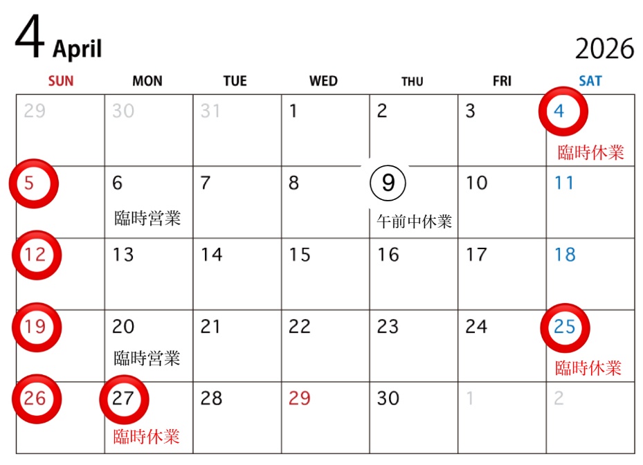 ※3月•4月は休みに変更があります。